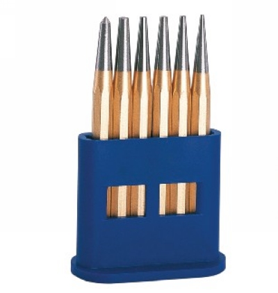 Durchtreibersatz 6-teilig 1-5mm + 1 Körner im Kunststoffhalter