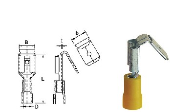 结合公扁型及母扁型插接片的多功能设计,应用广泛。 双连接点的设计可以在不需要重新配装的情形下,多增加一条电线。 绝缘外壳内之金属套筒可压紧电线前端绝缘处,保护电线, 适用于高震动环境。 材质: PVC耐燃材质、铜(镀锡)