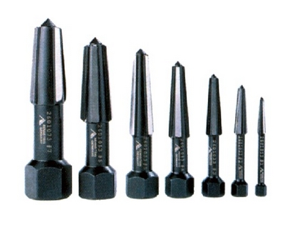 用于取出螺纹孔中残余断螺栓,不损伤螺纹孔。 根据段螺栓尺寸选择相应的取出器和麻花钻头; 在断螺栓上用麻花钻钻出相应的深度,在用锤砸入双刃断螺栓取出器, 用扳手卡住六方头,反方向旋转即可取出断螺栓。