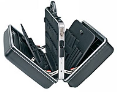 耐磨ABC材料,黑色;牢固的铝框架,带D形环用于轧带和固定),牢固的工具夹板带弹力松紧带和12个小袋,具有多种用途,方便摆放工具;舒适的手柄和安装装置,可配“拉杆”(货号 00 21 40 T);金属铰链;最大载重30公斤;可单侧或双侧打开;底层和箱盖可单独打开;两侧均带有箱盖固定器和铰链机制,可在任何开口位置平稳站立,并能在45o和90o位置放置;3位数码锁和两个夹锁,可固定箱盖;可拆除文件厢和可拆除工具板,一侧带13个插入袋;底层高5 ,可通过灵活的插入厢进一步分隔,盖板带6个大的插入袋,可通过锁扣固