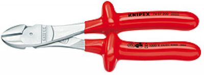 采用锻制的轴,用于重型剪切;适用剪切各种类型的线,包括钢琴丝; 长的斜口钳适用于剪切16mm2以下的铜线和35mm2以下的铝线;省力21%,长度200,头部镀铬,浸塑绝缘手柄