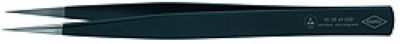 采用铬镍钢制作,具有不锈,防磁(18/10)和防酸的特点;采用ESD涂层,黑色,不反光,电阻为105欧姆;镊尖端采用亚光处理;采用直柄形式,强壮结实的镊头