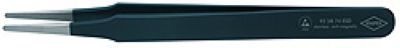 采用铬镍钢制作,具有不锈,防磁(18/10)和防酸的特点;采用ESD涂层,黑色,不反光,电阻为105欧姆;镊尖端采用亚光处理;圆形的镊头,宽度约为2mm