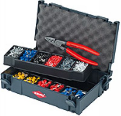 TANOS MINI-systainerTM包装(牢固的塑料盒体);两个可堆叠的塑料插入格,每个各六列,用于装连接端子;钳子97 71 180,端子数量各200的70/71/72/73;150的74