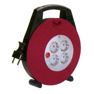 Kunststoffkabeltrommel 10m mit PVC-Kabel 3x1,5mm² mit 4 Schutzsteckdosen